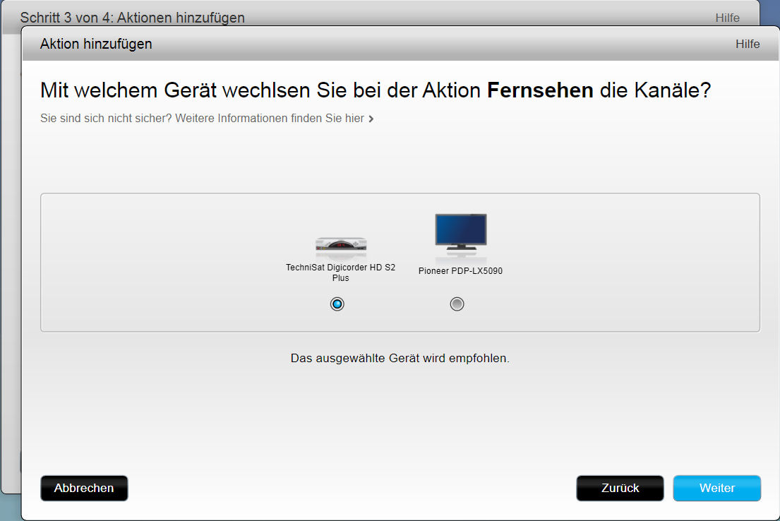 Im nächsten Schritt will die Software wissen, welches Gerät den Kanal-Wechsel vornimmt ...