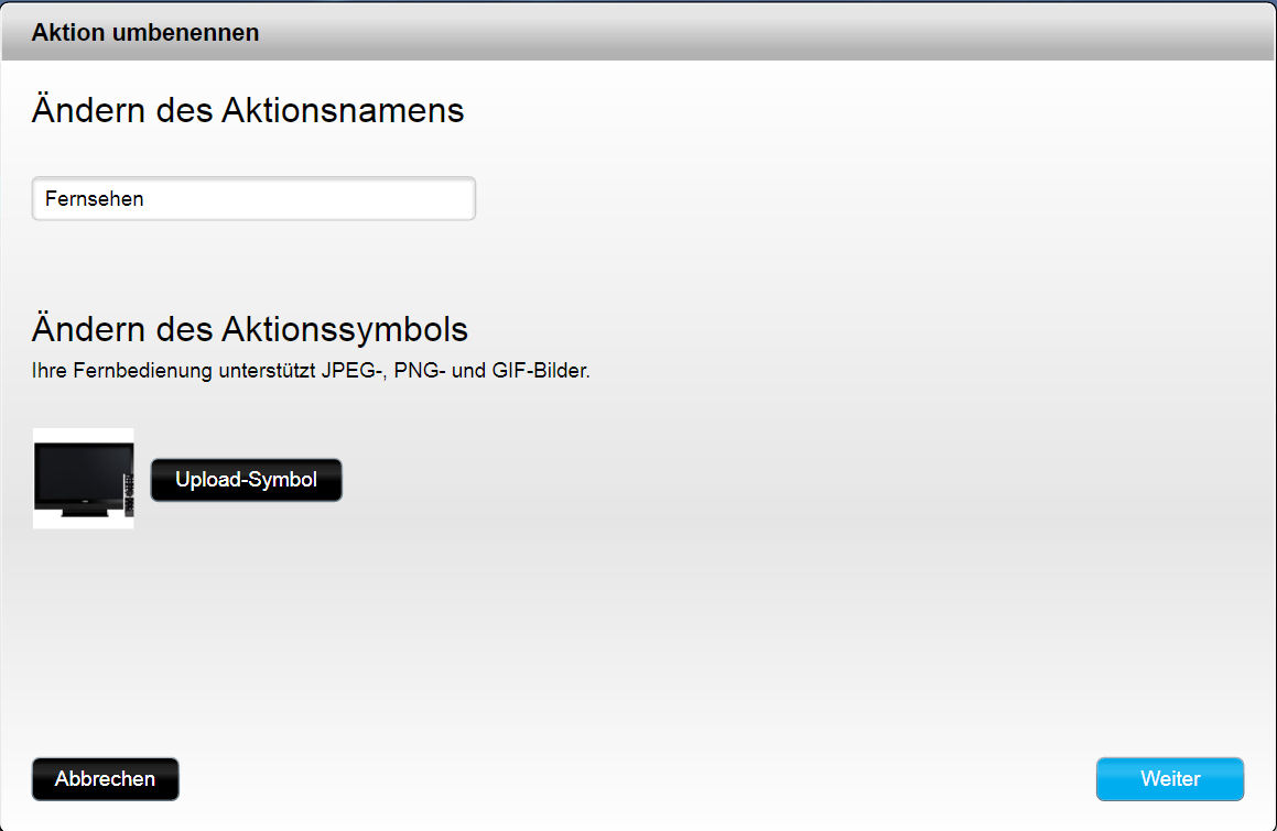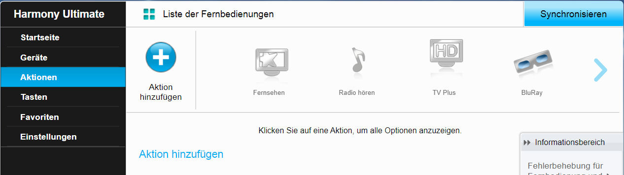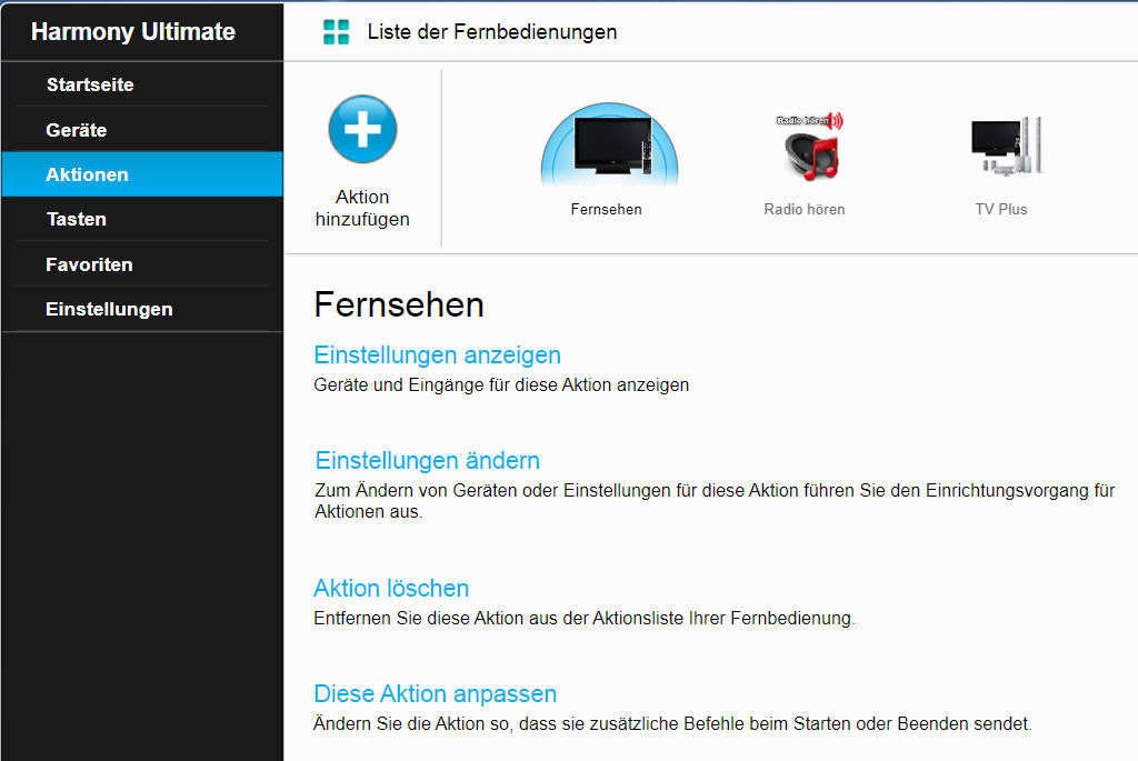 Um ein Gerät zu einer Aktion hinzuzufügen, gehen wir zuerst auf Aktionen und klicken dort die gewünschte Aktion einmal an. Danach gehen wir auf den Punkt Einstellungen ändern... ... und können im ersten Schritt ... - diese Aktion umbenennen
