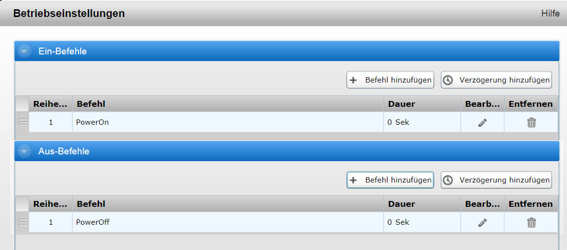 - Power-Befehl (er schaltet das Gerät real ein bzw. aus)