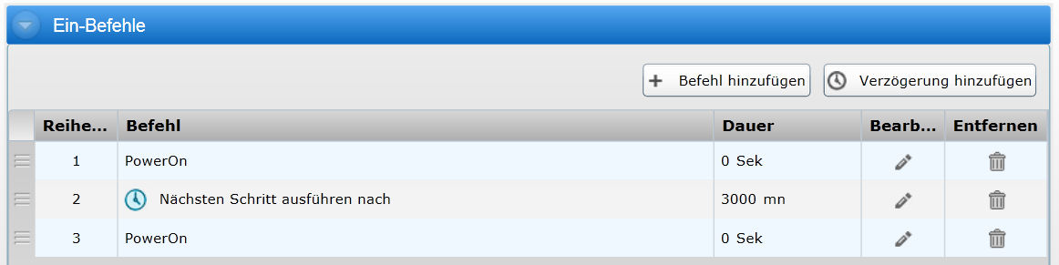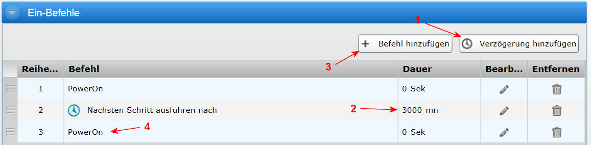 Soll nun nach dem jeweiligen Befehl dieses Gerätes eine Verzögerung erfolgen, sind diese Schritte erforderlich: