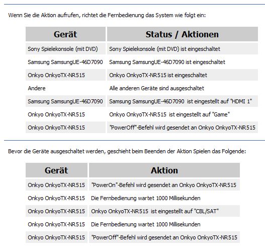 Früher konnte ich über die alte "Logitech Harmony Remote Software 7" im Rahmen der Konfiguration von einer Aktion zusätzlich Aktionen definieren, die durchgeführt werden sollen, wenn die aktuelle Aktion beendet wird.