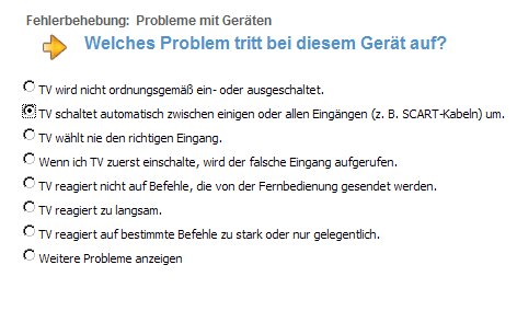 Um die SCART-Option zu kontrollieren bzw. nachträglich zu verändern, gehen wir bei dem Gerät auf die Fehlerbehebung.