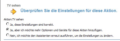 Die Auswahl der Lautstärke-Regelung erfolgt über den TV: Die Eingangswahl des SAT-Receiver's: Die Eingangswahl des TV's: Im nächsten Fenster wählen wir den Punkt "Ja, aber ich möchte mehr Optionen und Geräte für diese Aktion hinzufügen" aus: Der nächste Schritt erlaubt es uns, weitere Geräte in diese Aktion aufzunehmen.