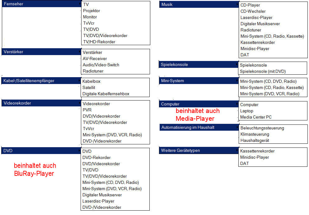 Und damit alles schön vollständig ist, hier auch alle möglichen Geräte-Arten: