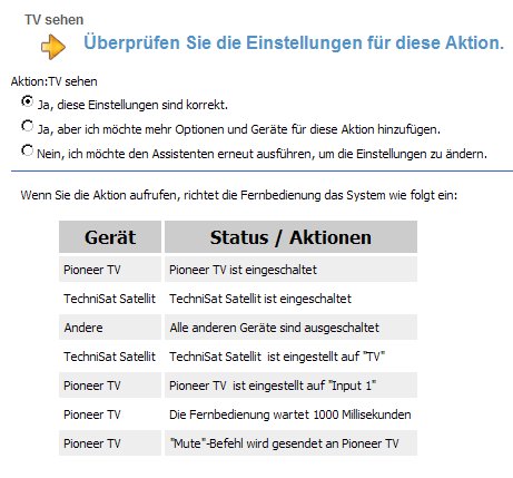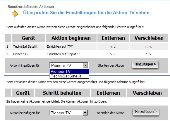 Hier das Ganze am Beispiel meiner Aktion "Fernsehen", die den TV und den SAT-Receiver beinhaltet: