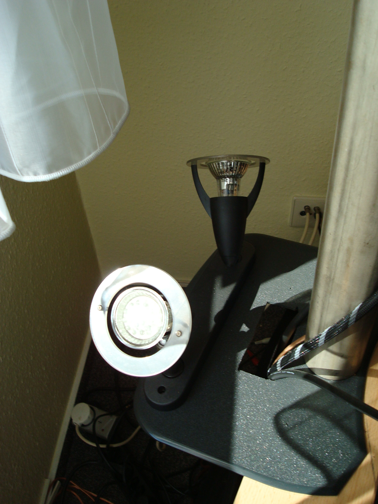 Chice Idee mit den Baumarkt-Strahlern! Dimmbar sind die mit LEDs bestückt nicht, oder (ist vermutlich auch nicht nötig).