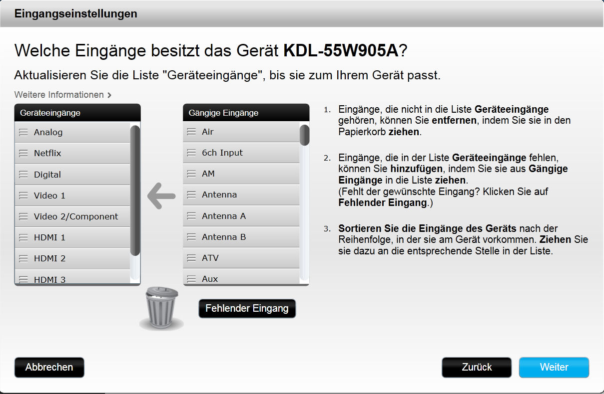 Für die korrekte Funktion der Eingangs-Wahl des TV's bitte folgendes beachten: