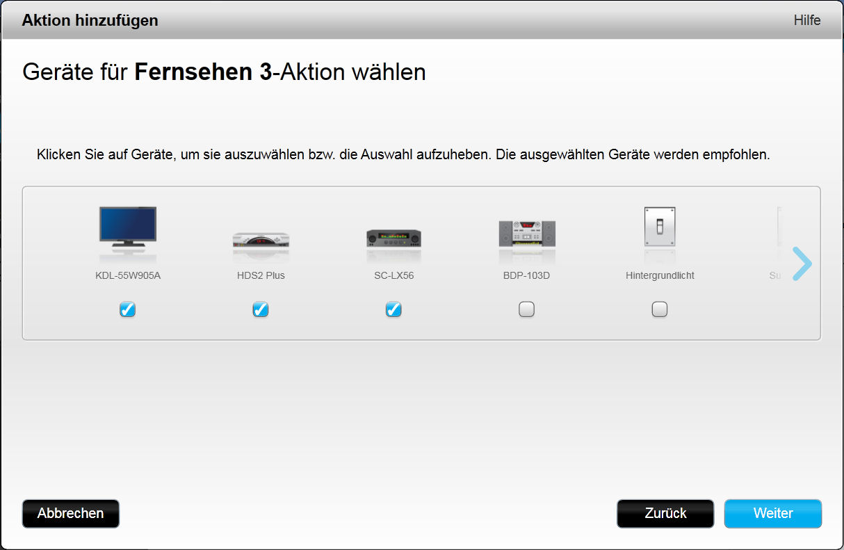 Zunächst wählen wir das gewünschte Gerät oder die gewünschte Aktion aus.