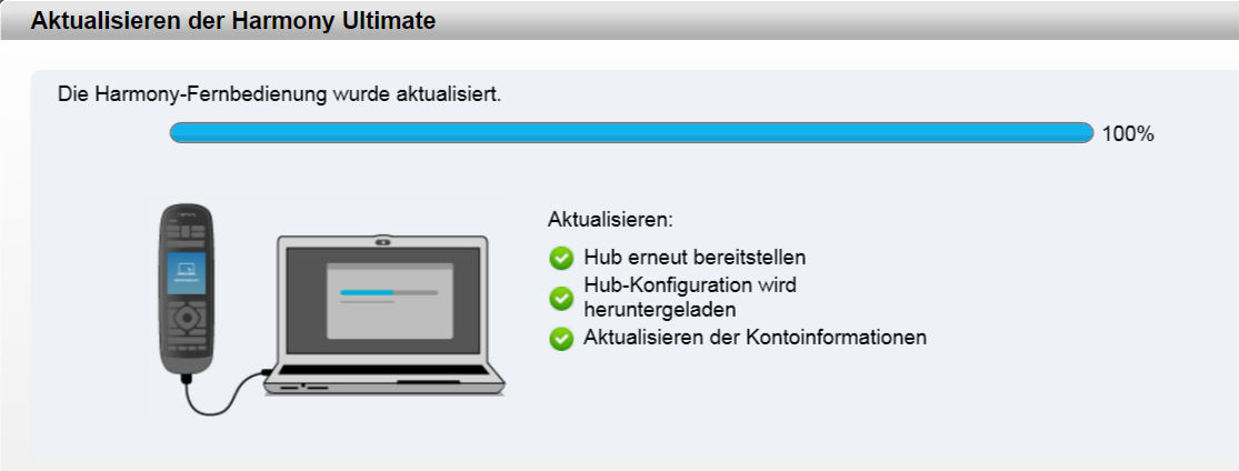 In solch eine Fall kann eine Synchronisierung über die Harmony selber nicht vorgenommen werden, weil auch der Hub eine neue Firmware erhält.