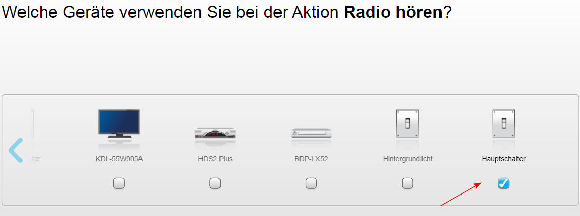 Dazu klicken wir die Aktion einmal, gehen auf "Einstellungen ändern" und klicken den Hauptschalter in der Geräte-Liste einmal an.