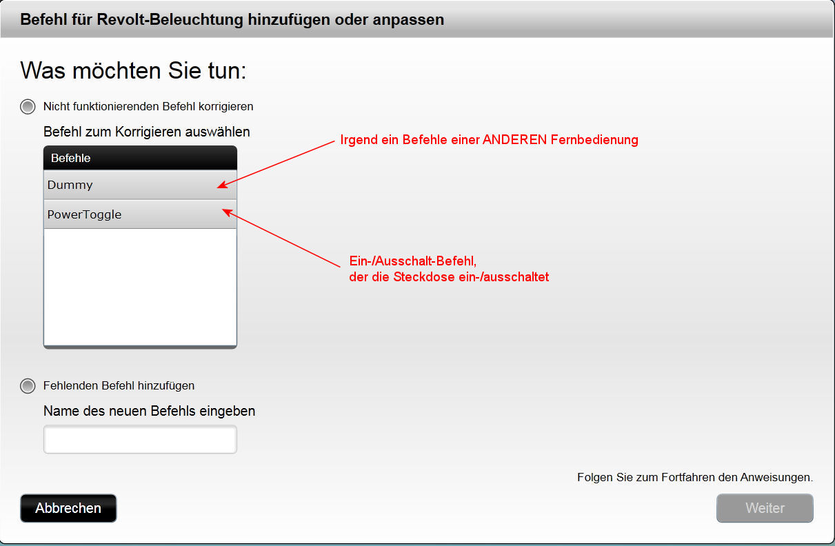 IR-Schaltern mit nur einem Befehl (im Beispiel: Revolt IR-Steckdose also Abschaltung per IR-Steckdose)
