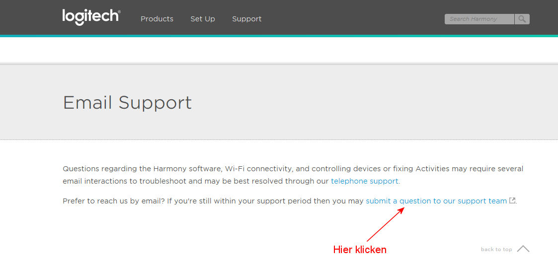 6.01 Info: Kontakt zum Harmony-Support