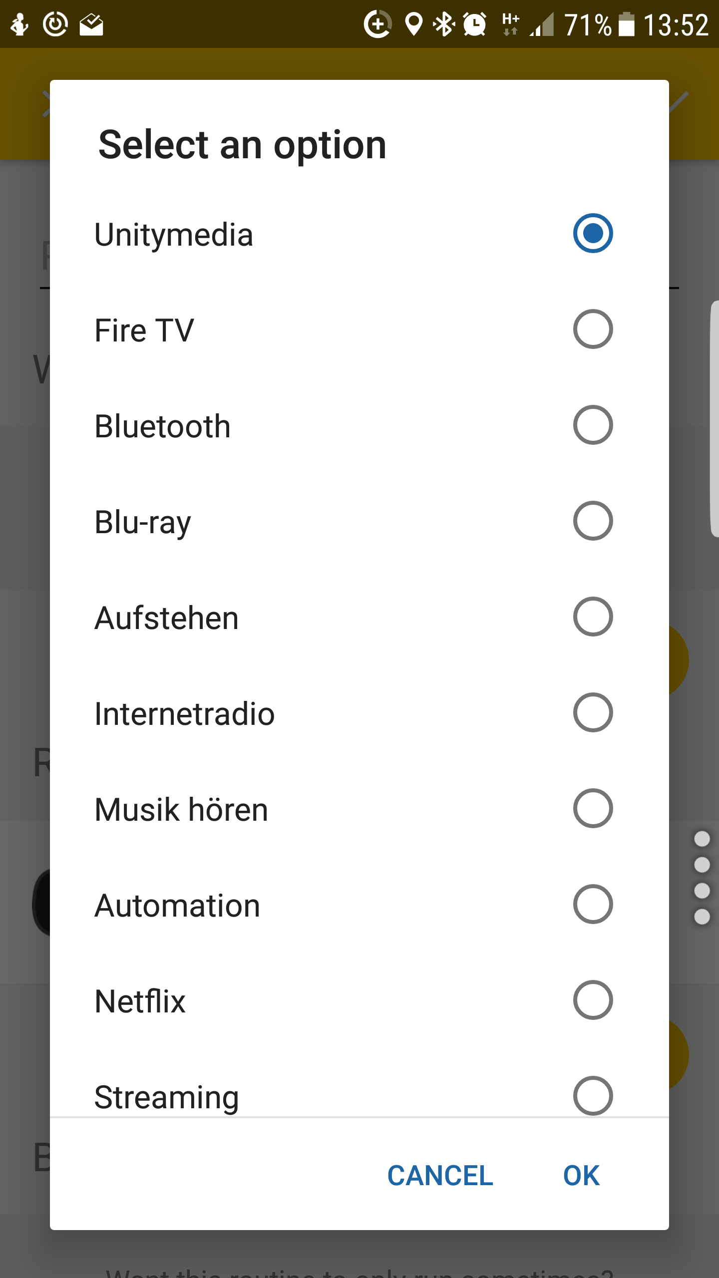 Hier nicht vergessen einen Namen für die Routine zu vergeben. Mit einem Klick aufs Zahnrad könnt ihr nun die gewünschte Aktion der Harmony verknüpfen