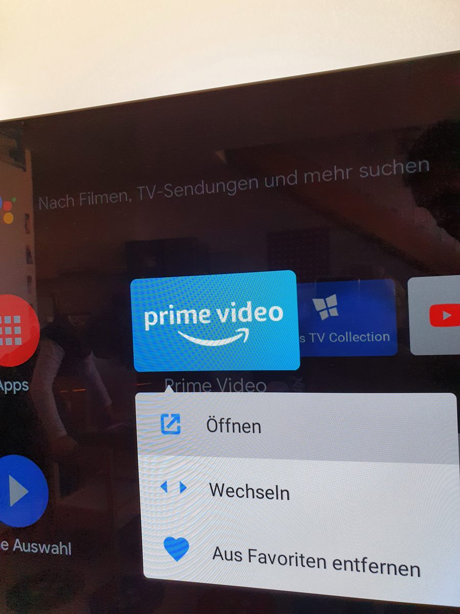 Das zweite Problem betrifft die Verwendung der Companion-Fernbedienung auf dem Smart-TV-Startbildschirm. Anstatt, dass eine App geöffnet wird, wenn ich "OK" auf der Fernbedienung drücke, geht ein "Menü" auf, bei dem ich verschiedene Auswahlmöglichkeiten habe (siehe Bild). Ich würde aber gerne direkt die App öffnen. Mit der Philips-Fernbedienung funktioniert alles, wie es soll, wenn ich dort "OK" drücke, dann wird die App direkt geöffnet.