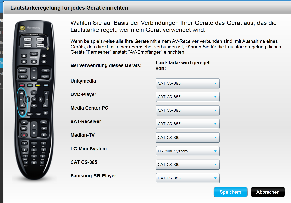 Mit der H650 habe ich einfach gleich am Anfang schon die komplette Programmierung von der H350 übernommen. Jetzt wo Du es ansprichst dämmert mir das Problem. Die H650 erkennt es nicht als ein Gerät, welches zur Lautstärkenverstellung geeignet ist.