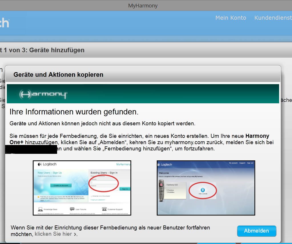 Re: Myharmony & Harmony one+ Datenübertragungsproblem