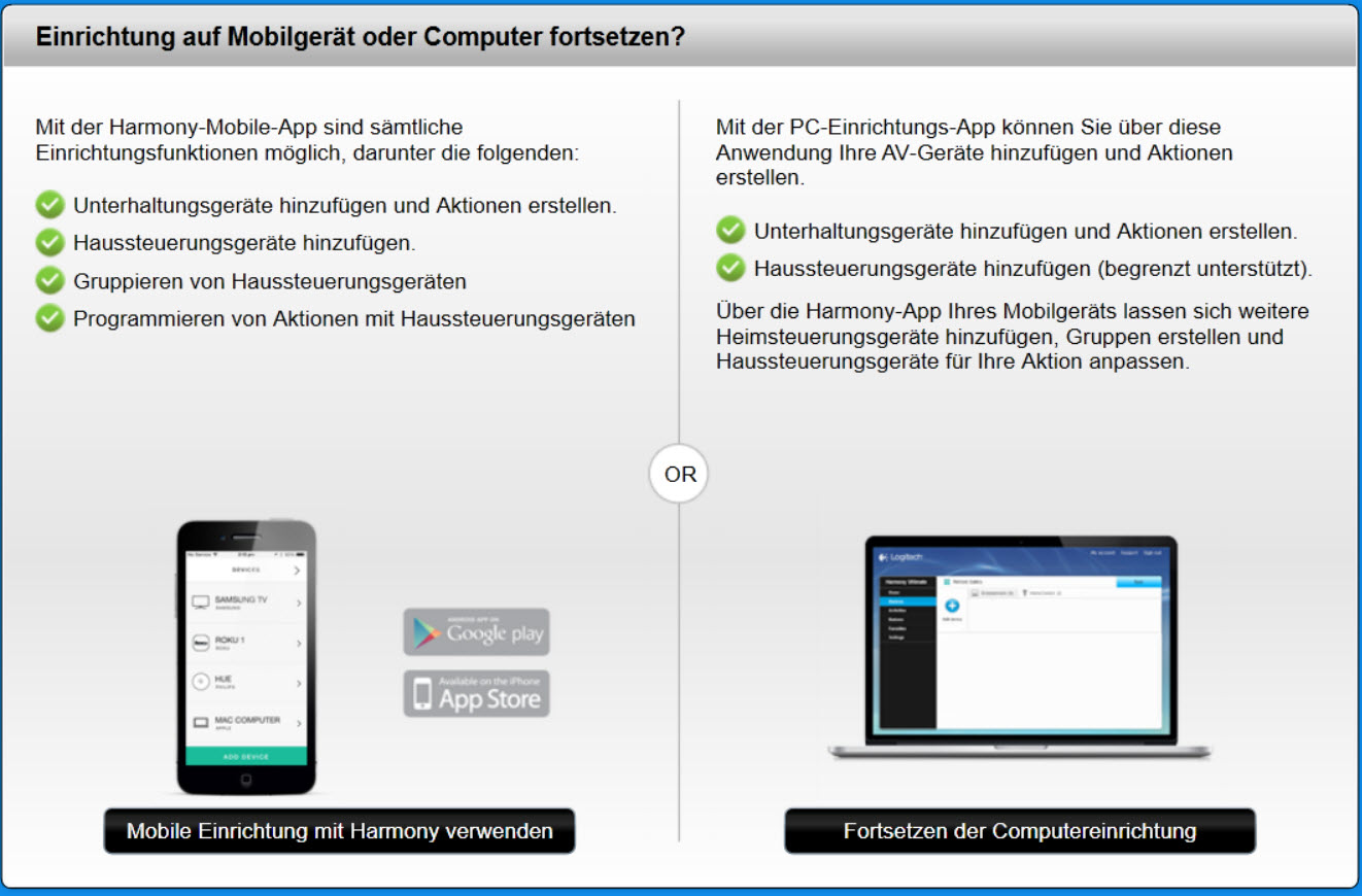 Die Konfiguration über die App hat den Vorteil, dass der Wizard während der Einrichtung andauernd on-the-fly mit dem HUB die Einstellungen mitten während der Konfiguration testet. Man muss nicht erst wie am PC den HUB synchronisieren, dann auf der Fernbedienung auch noch manuell "Einstellungen --> Synchronisieren --> noch mal Synchronisieren" anstoßen und dann relativ lange synchronisieren lassen. Über die App wird der HUB direkt synchronisiert, getestet, eine Rückfrage angezeigt, ob alles direkt funktioniert hat, ohne dass man alles elendig syncen muss. Zudem wird die Harmony 950 auch sofort automatisch (und viel schneller) synchronisiert, sobald man sie in die Hand nimmt. Das ist alles doch weeesentlich komfortabler und schneller.