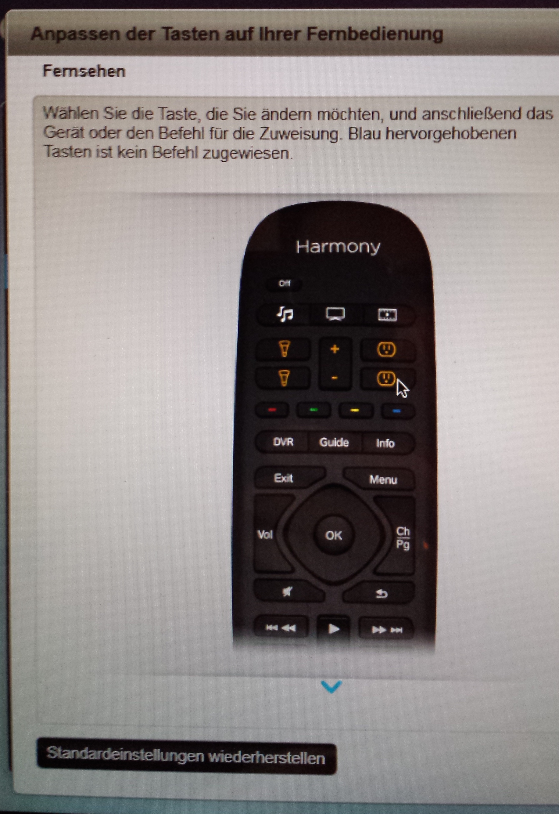 Bedeutet das, dass Du besagte Tasten im Bereich der Tasten-Belegung unter myharmony.com gar nicht angezeigt bekommst?