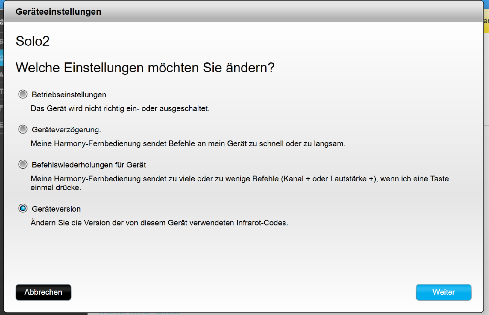 Habe gerade die Duo2 2x eingetragen, aber den Punkt "Geräteversion" gibt es bei mir immer noch nicht. Es erscheint nur die Punkte Betriebseinstellungen, Geräteverzögerung und Befehlswiederholung für Gerät. Ich könnte verzweifeln.