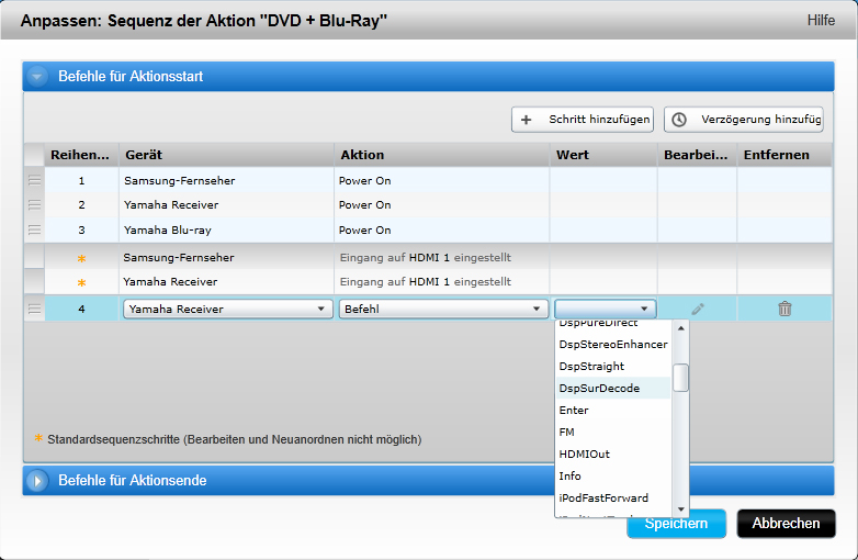 Bild Harmony FAQ (nur myharmony.com) | 2.07 Anleitung: Befehle/Verzögerungen zur Aktion hinzufügen