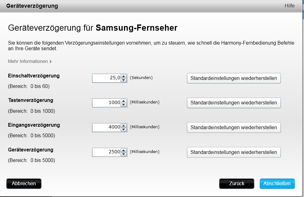 bei Geräte aber nicht von Hand in die Aktion reinbasteln. In den Geräteeinstellungen gibt es einen Punkt für diverse Verzögerung und da wäre wohl Einschalt- bzw. Eingangsverzögerung eine Stelle wo man suchen sollte.