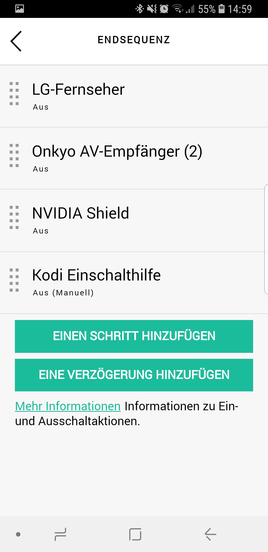 Konfiguration des Harmony Hubs im Anhang.