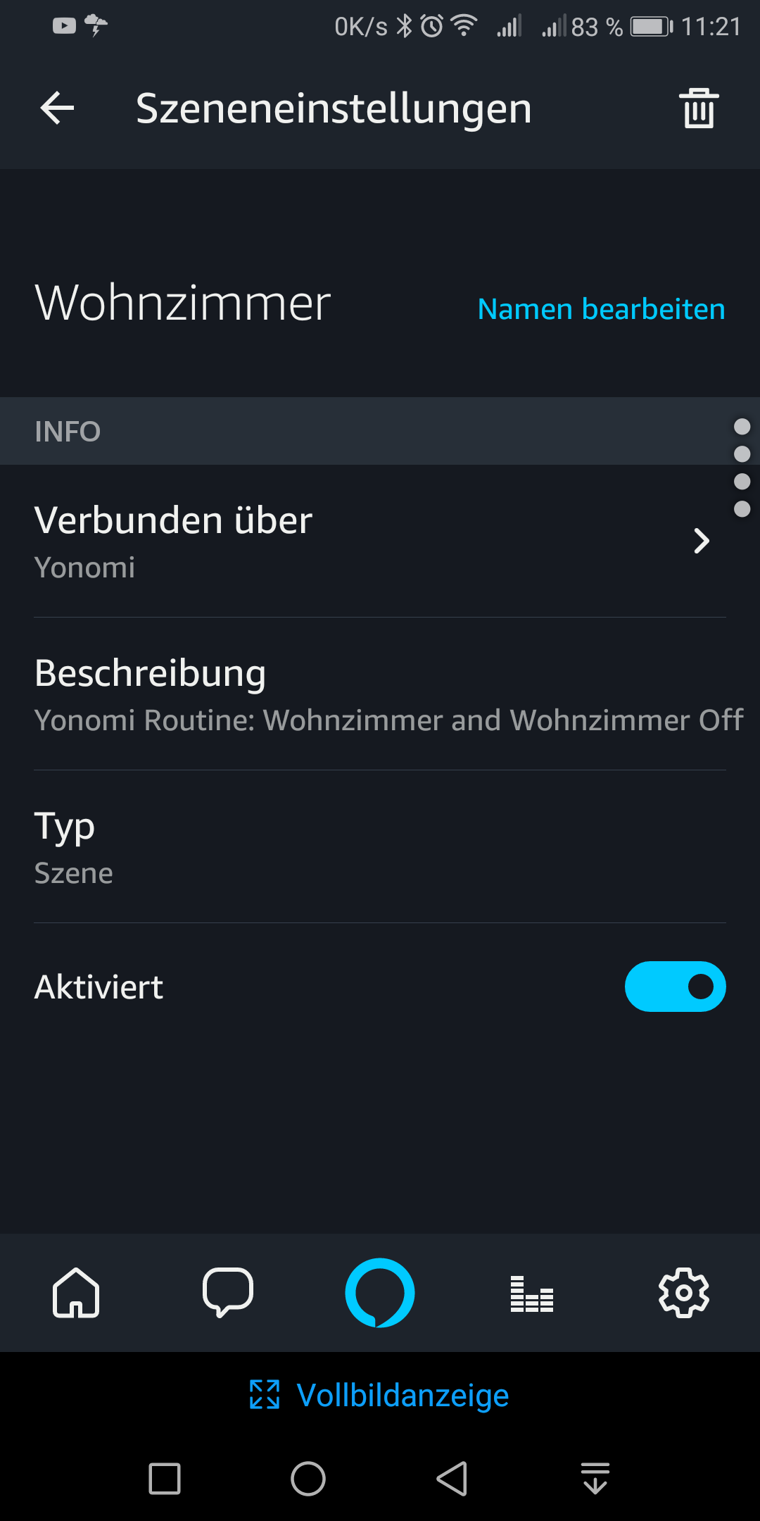 Alexa scheint "an/aus", "einschalten"ausschalten" im Zusammenhang mit Yonomi zu ignorieren. Meine Ausschaltroutine heißt "Anlage aus".