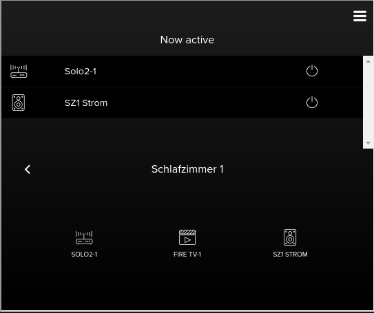 So in etwa sehen alle Zimmer aus bzw. jetzt ist noch Licht hinzugekommen. Man sieht die Harmony Aktionen, Strom und auch Licht schön aufgeräumt.