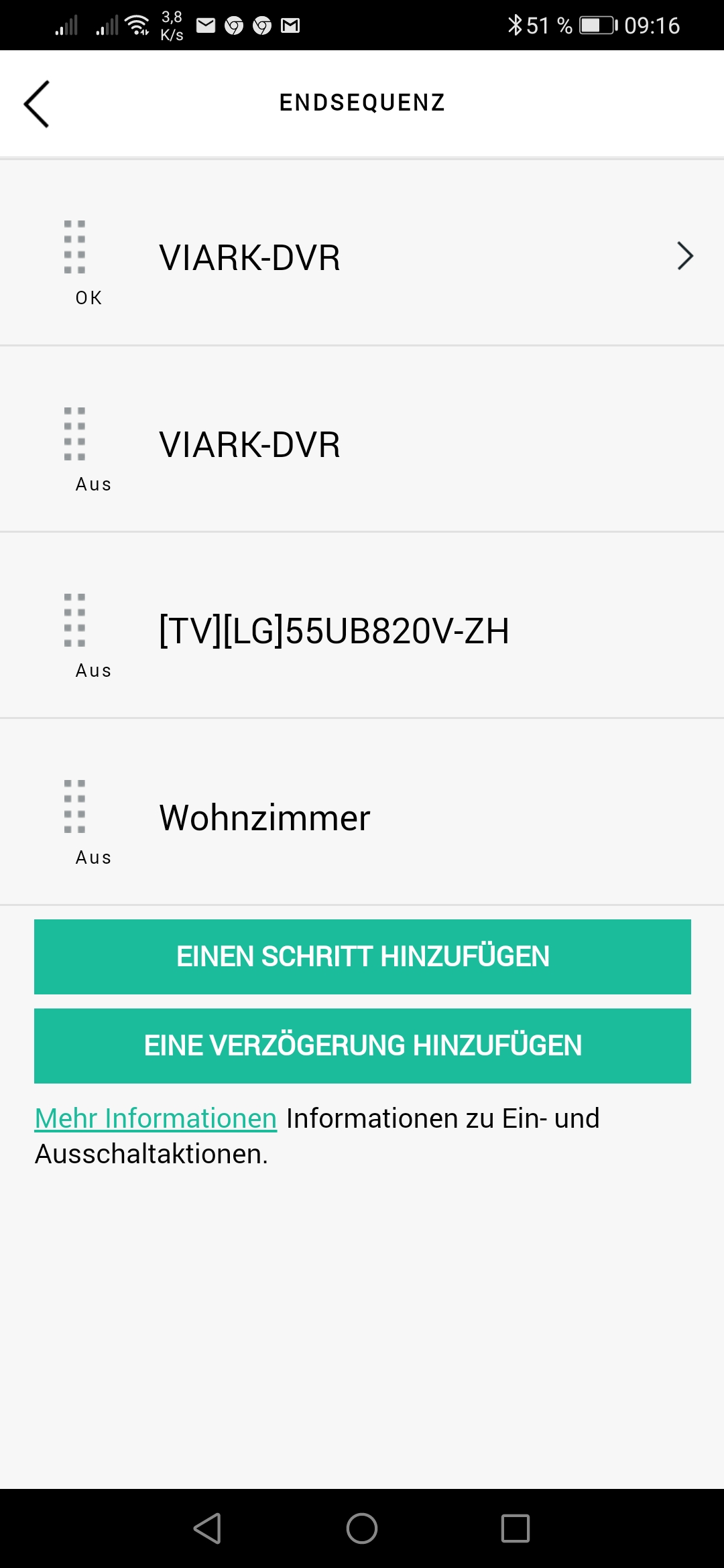ich würde es aber in der Ende-Sequenz des Gerätes nicht der Aktion machen. Der Befehl in der Aktion würde immer ausgeführt werden wenn Aktion beendet ODER gewechselt wird während in den Betriebseinstellungen würde es nur ausgeführt werden wenn der Receiver wirklich ausgeschaltet werden soll.
