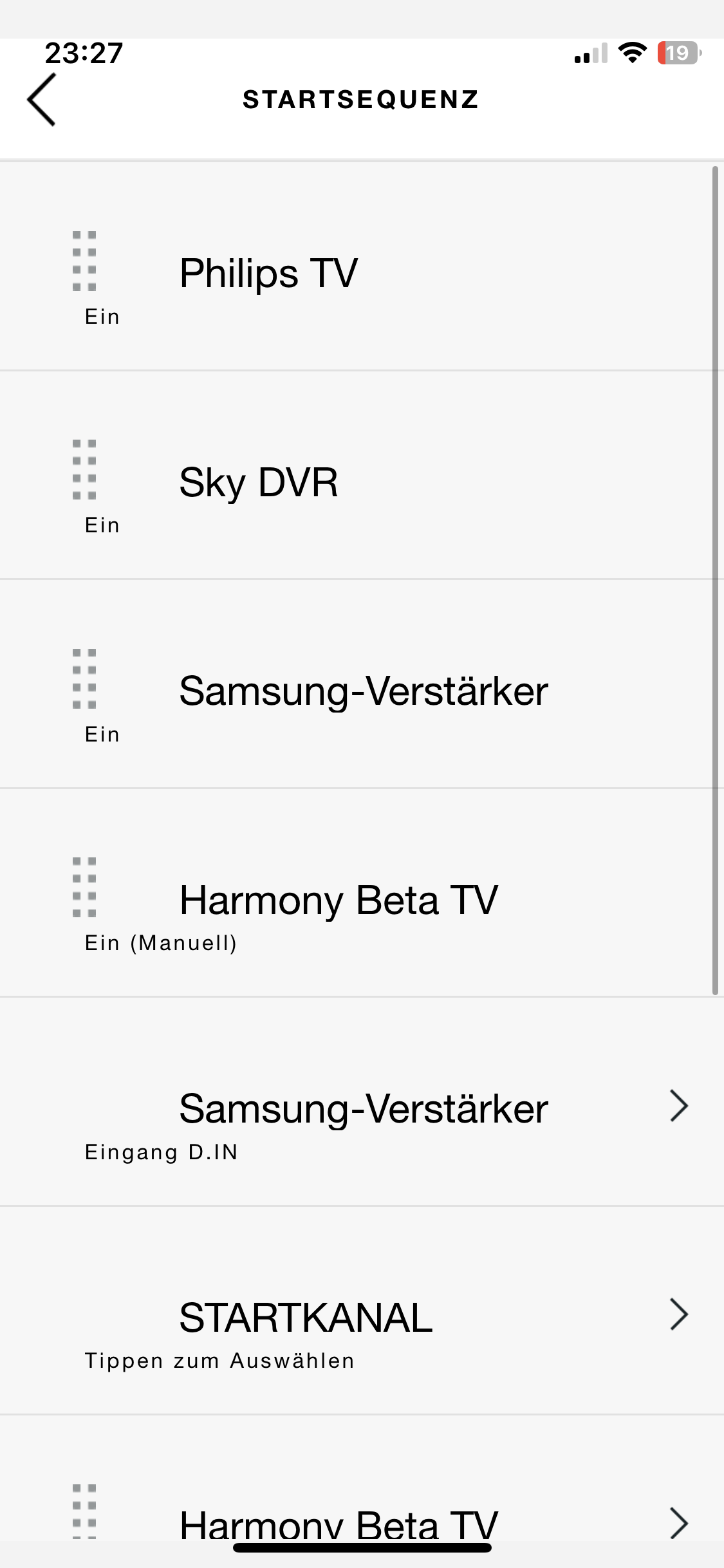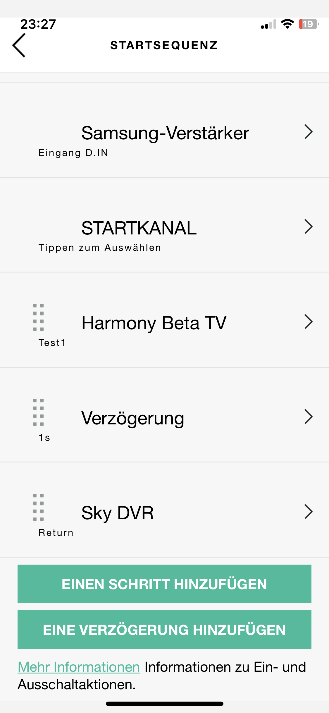 Ich habe den richtigen Philips TV in die Startsequenz genommen sowie den von der Hormony Beta. So schaltet der richtige Philips TV den TV an und die Harmony Beta ist nur für den Wechsel des Eingangs verantwortlich. Die eigentliche Steuerung des TVs kann ich dann trotzdem über den Philips TV machen. Hoffe ihr versteht irgendwie was ich meine