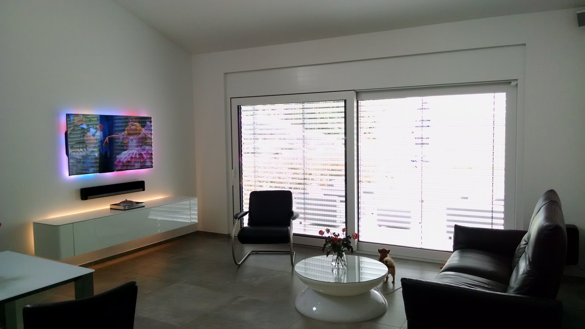 Da nun endlich ein passendes Lowboard mit Wandmontage gefunden habe, ist meine bescheidene Fernsehecke nun endlich fertig.