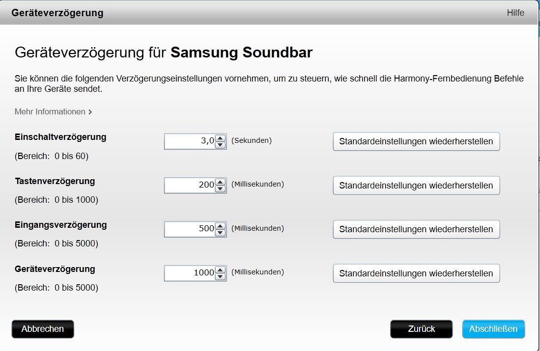 Im Anhang findet ihr noch weitere Einstellungen über Befehlswiederholungen bzw. Geräteverzögerungseinstellungen.