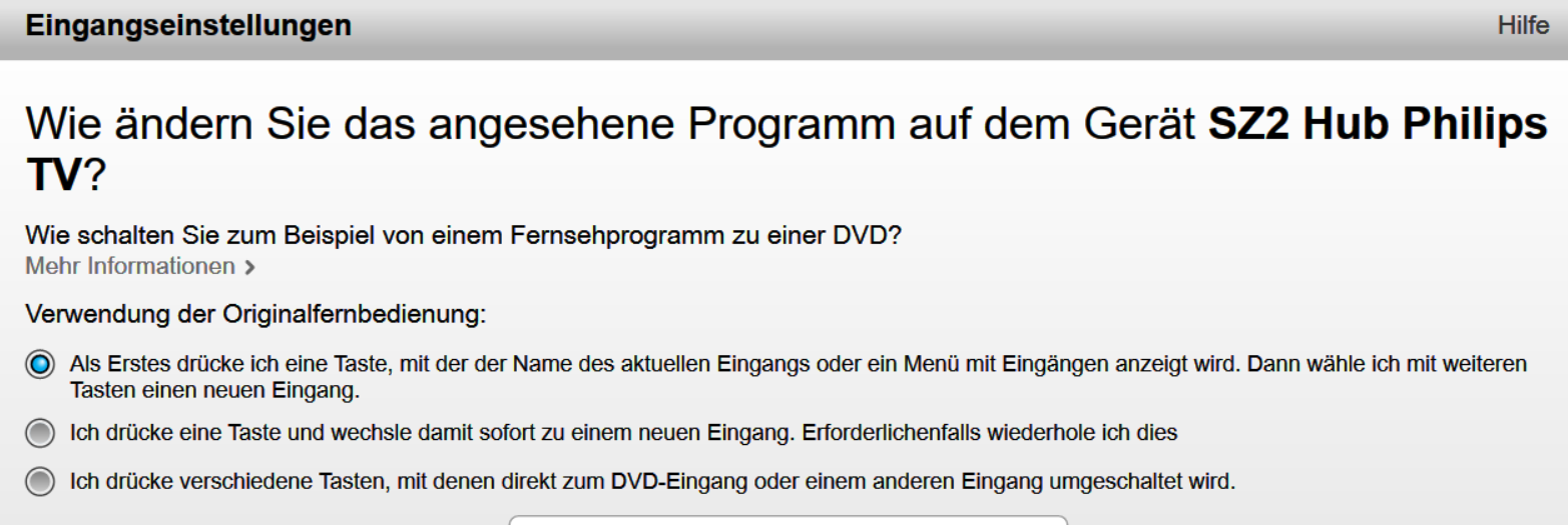 Ich habe dies bei MyHarmony im TV Gerät bei den Eingangseinstellungen konfiguriert.