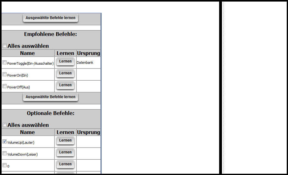 Gerät --> Optionen --> Infrarot-Befehle lernen