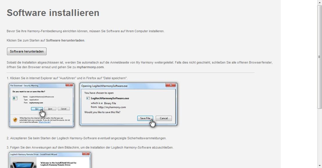 habt Ihr den Silverlight Plugin für Firefox installiert? Denn "Software installieren" über myharmony bringt nix. Es fehlt der Plugin von der Microsoft homepage. Dann soltle es auch mit FF klappen.