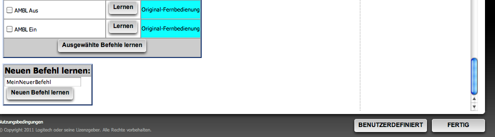 Dann den angelernten Befehl auswählen und "Benutzerdefiniert" überschreiben