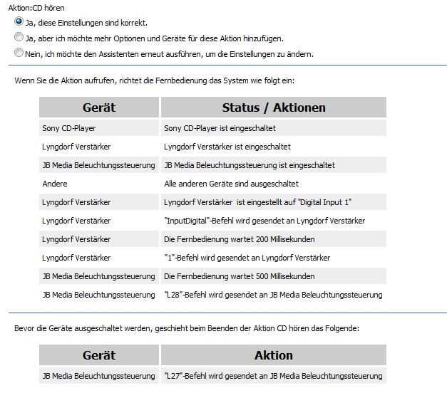 In meinem Beispiel schaltet der LM übrigens den CD Spieler ein.