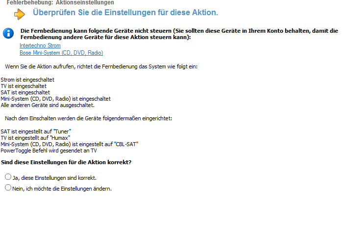 Poste mal 'nen Screen-Shot von der ersten Seite, wenn Du bei einer der betroffenen Aktionen auf "Fehlerbehebung" gehst.