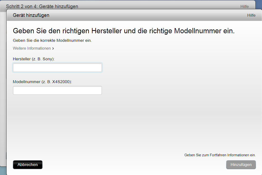 Ihr solltet erstmal immer nur mit Teilen der Geräte-Bezeichnung beginnen.