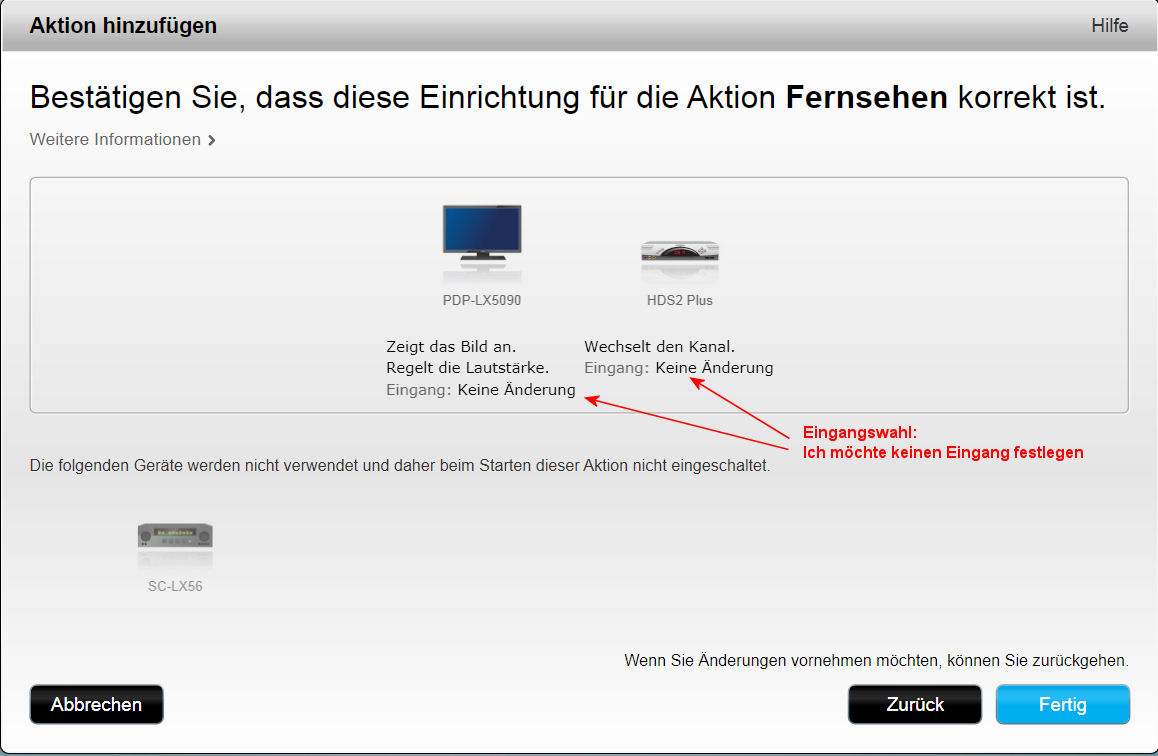 Nun muss die Software noch wissen, auf welchem Eingang die einzelnen Geräte stehen müssen.