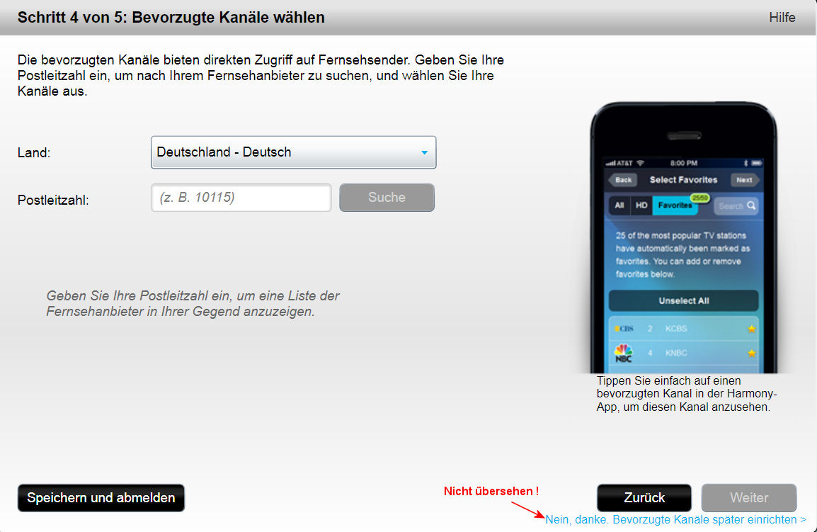 Keine Angst, Logitech "späht" damit nichts aus, sie legen anhand der Postleitzahl nur fest, welcher Fernsehanbieter für uns in Frage kommt: