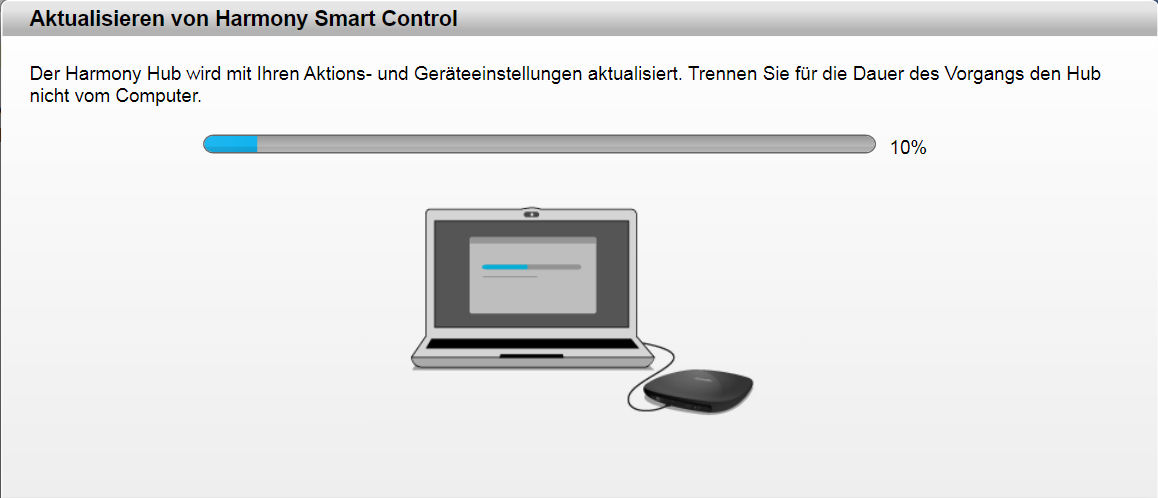 Sind wir mit allem soweit fertig, geht's automatisch zur ersten Synchronisierung der Harmony: