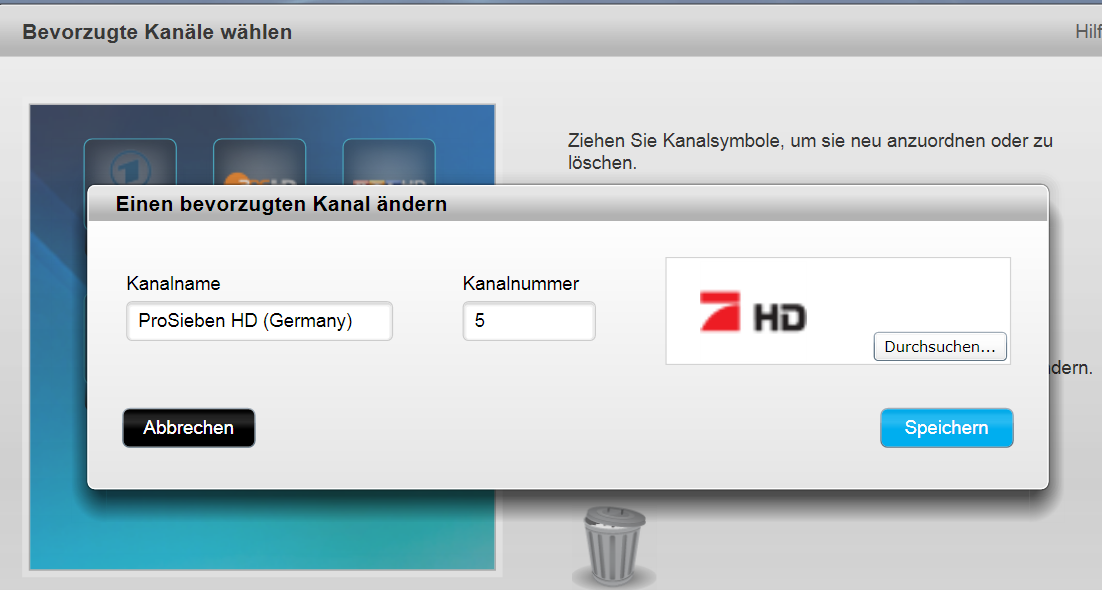 Favoriten --> bevorzugte Kanäle ändern --> Weiter