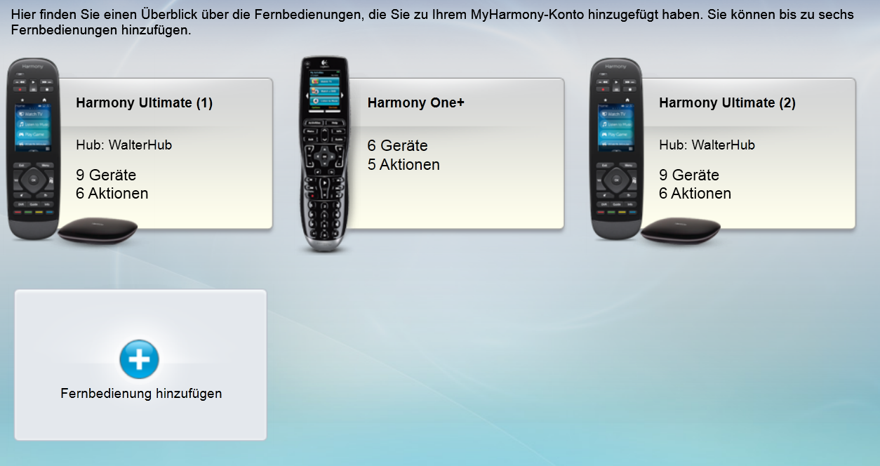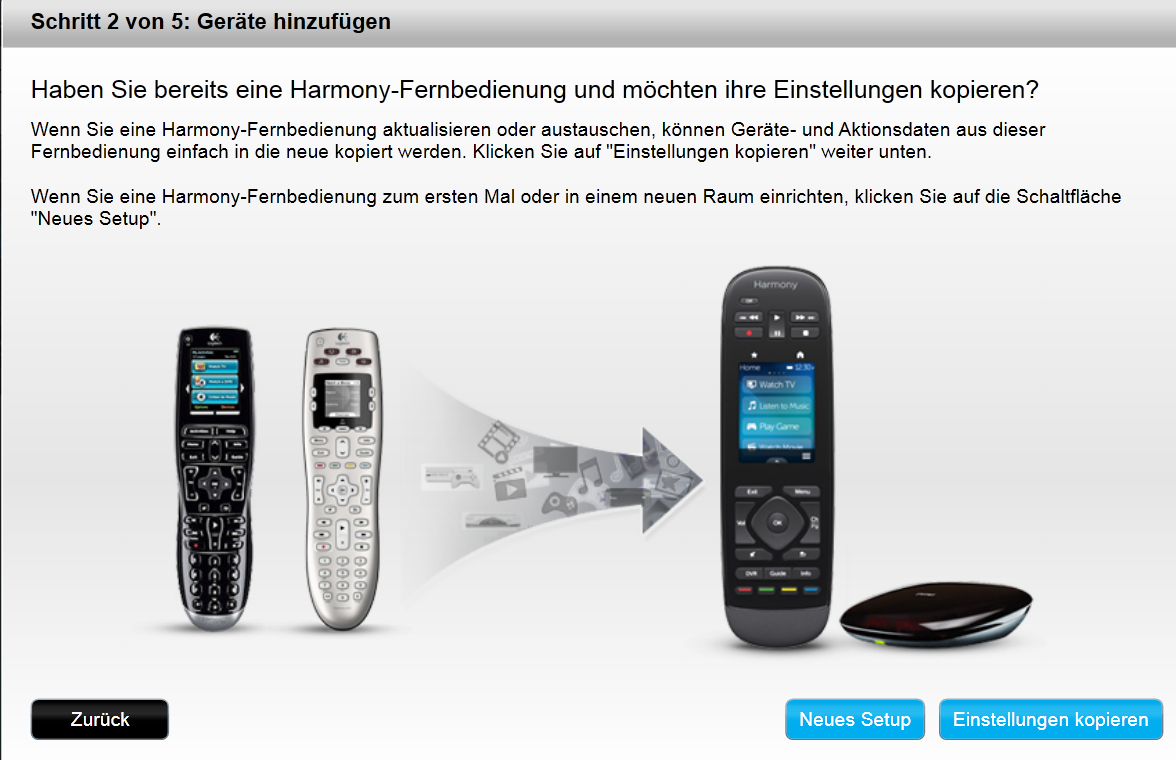 Ich könnte ja jetzt einfach ein neues Konto in Myharmony.com anlegen und die neue FB von dort aus programmieren. Meine Frage ist aber folgende...
