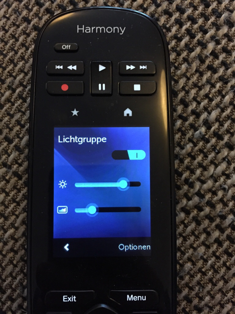 - Mit der Harmony Remote geht nur Ein/Aus, Helligkeit und Farbtemperatur