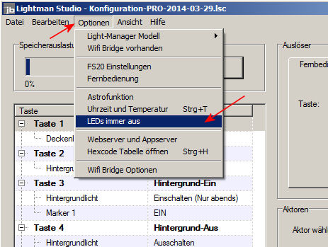 Wer kann schnell helfen - finde die ein/ aus Schaltung für die blaue Status LED meines Light Managers mini nicht mehr.
