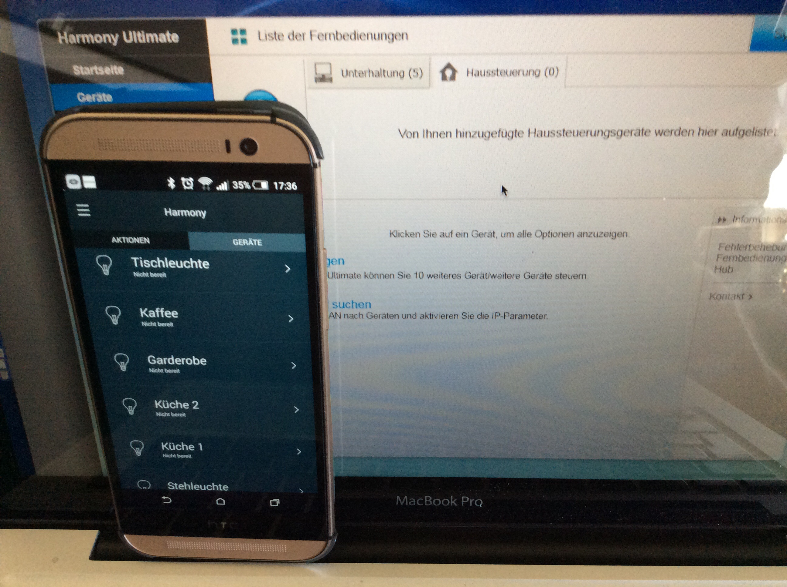Wenn ich dann noch meine HUE-Bridge mit der Harmony paire, dann bekomme ich zu den ALTEN Leuchten auch