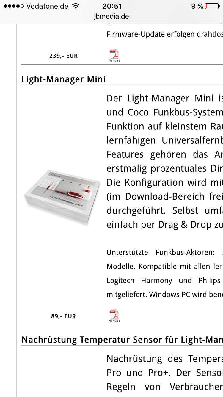 Und als "Übersetzer" zwischen Harmony und Funksteckdosen brauchst du einen Lightmanager. Es gab malandere, günstigere Lösungen. Aber die sind 1. nicht mehr am Markt und 2.waren die nie so zuverlässig wie der LM