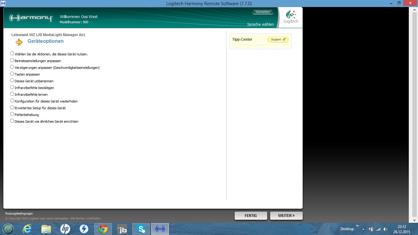 sorry, habe in MyHarmony "gedacht". Aber das geht auch bei der PC Software, die Betriebseinstellungen sind da der richtige Punkt.