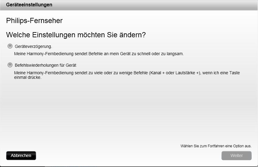 Die Sache mit dem "Erweiterten Setup" habe ich gesehen, allerdings bietet mir die MyHarmony-Software diese Möglichkeit nicht.